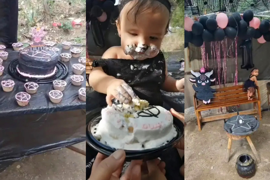 It’s not often that the birthday party of a one-year-old makes the news. But the birthday party for a little girl named Lilith made headlines courtesy of a viral video on TikTok, showing the adorable little girl’s eyebrow-raising birthday party, complete with black balloons, a cake decorated with a pentagram, and a Baphomet piñata.