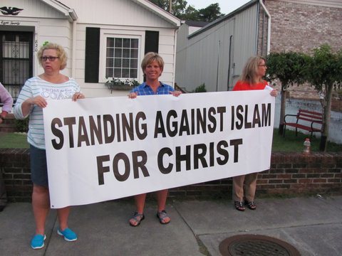 To the ladies with the Christians against Islam banner. May God forgive you.