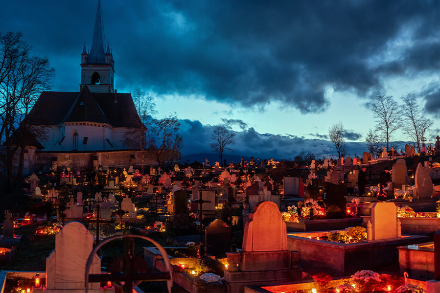 Traditionally, Christians attended candlelit vigils on this night of fasting and prayer in honor of the saints and their sacrifices. Following this ceremony, they'd visit graveyards and honor the dead by placing candles and flowers on graves of lost loved ones.
