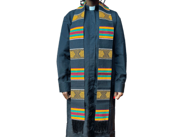 If you want to make a statement in style at your next ceremony, the Kente Stole may be just what you're looking for. This hand-woven stole is made from cotton and polyester based on Ghanaian textiles and features an African design in yellow, green, and red. This stole is used by many to celebrate traditional African cultures and is suitable for several different occasions.