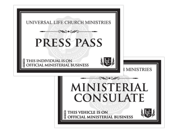 On one side is a Ministerial Consulate designation, declaring that your vehicle is on official clergy business. The placard designates your vehicle the property of a dedicated and experienced ULC minister.