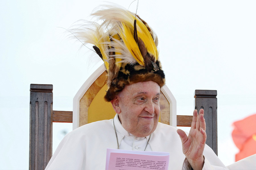 Francis arrived in Vanimo, a remote town on the northwest coast, because he specifically wanted to visit those on the outskirts of modern society. Although Papua New Guinea is largely a Christian country (thanks to centuries of colonialism and some very motivated missionaries) citizens in Vanimo and other outlying areas are not all Catholic; many largely still honor indigenous spiritual beliefs.